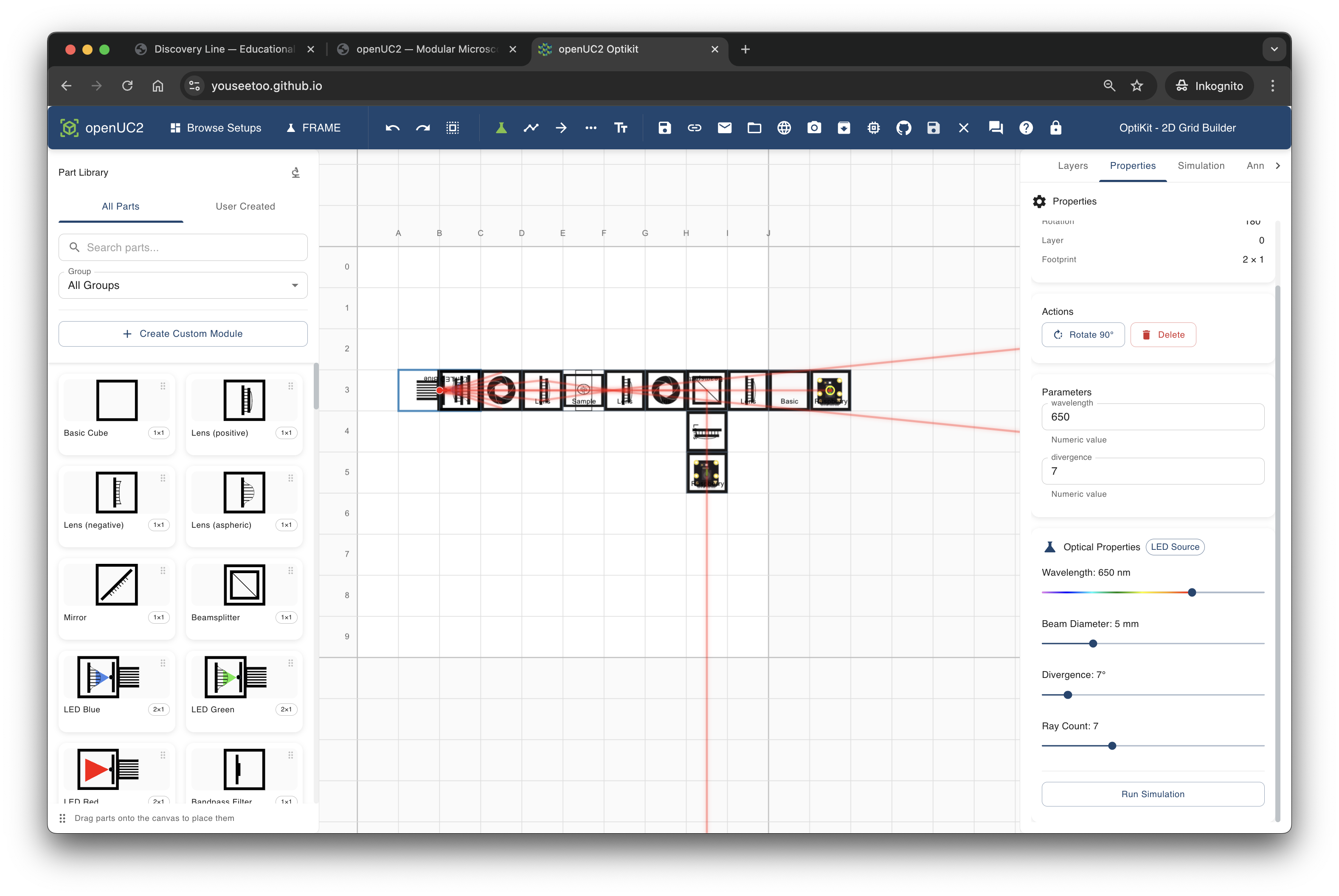 Take any optical setup — a fluorescence microscope, a light-sheet system, a Michelson interferometer — and break it into standardized cube modules. Each cube maps to one component in your beam path.