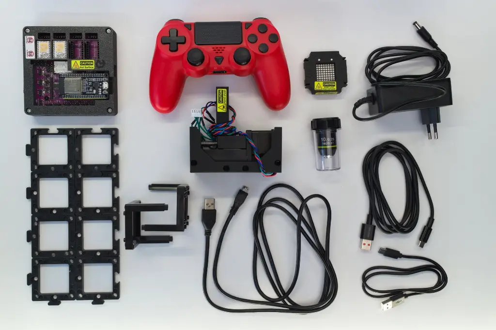Adds ESP32 microcontroller, stepper motors, LED matrix, and USB camera. Transform your analog microscope into a computer-controlled imaging system. Requires: CoreBox.