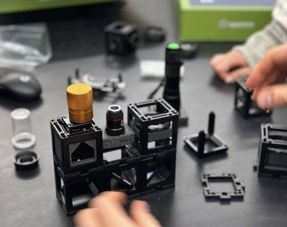 Teach optics by building real instruments. Students assemble microscopes, interferometers, and imaging systems from standardized cube modules — then experiment, break, reconfigure, and understand how light actually works.